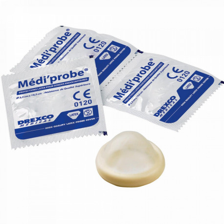 Protection de sonde – Lubrifiée – Dimensions (sans extension) : longueur 195 mm, diamètre 33 mm – Boîte de 144